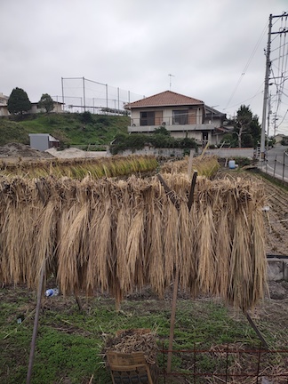 RidewithGPS gave us a nice route to Mukaishima. After we left the hotel and Highway 2 we followed some smaller roads through quiet villages. It is definitely harvest time for the rice, and families were working together to get the rice cut and dried.