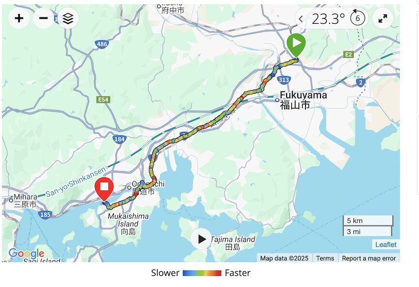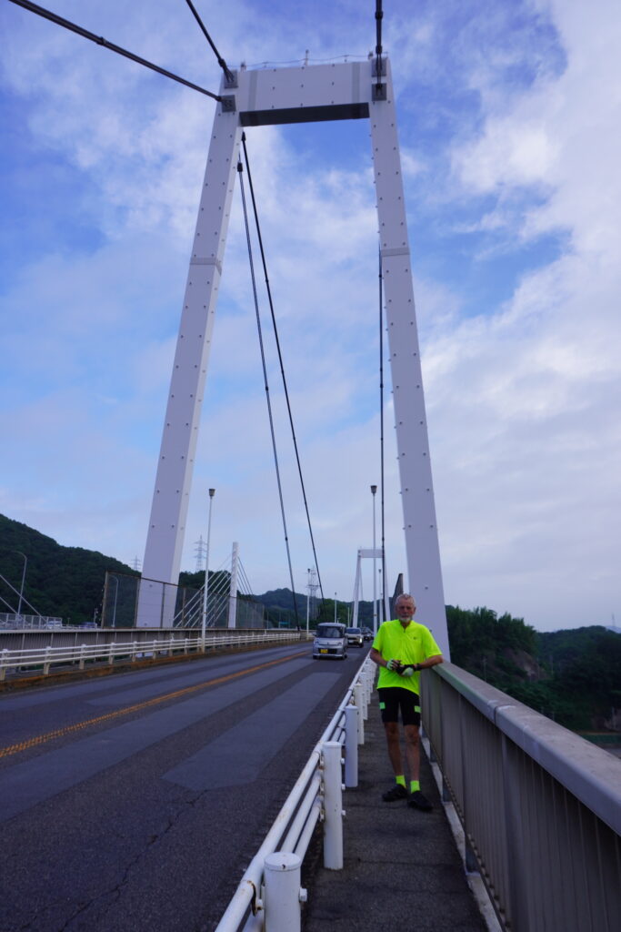 We are now on the Shimanami Kaido. This is a “must do” bike route in Japan. The Shimanami Kaido is a 70 km stretch of road for cyclists that connects Onomichi to Imabari and crosses six bridges, connecting six islands in Ehime Prefecture. Most cyclists complete the ride in one day.