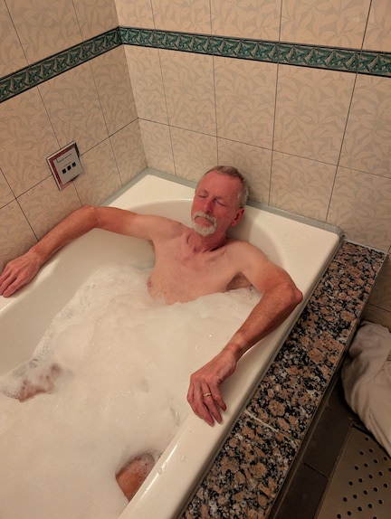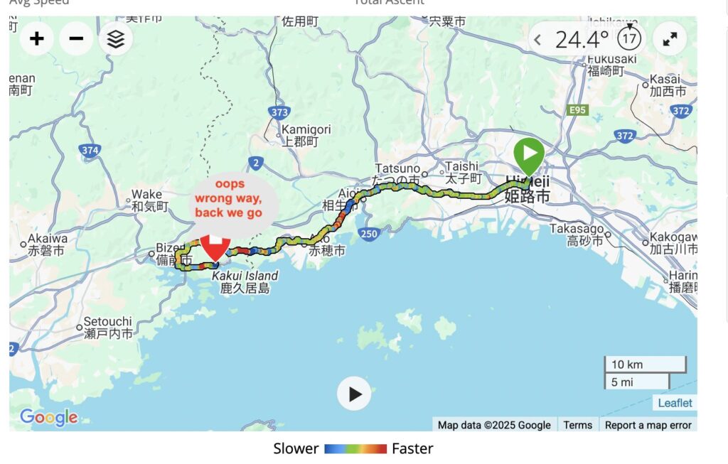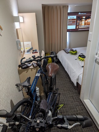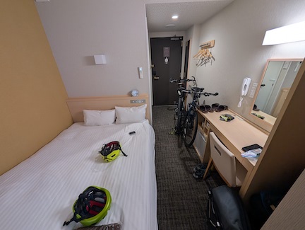 We came back to the hotel and checked in at 2:30. We had bought some noodles from the Family Mart for dinner as we are about 3.5km from the downtown. We paid extra for breakfast, which should give us a good start for a long day of cycling with “hills”. The hills are the ramps up to the bridges.