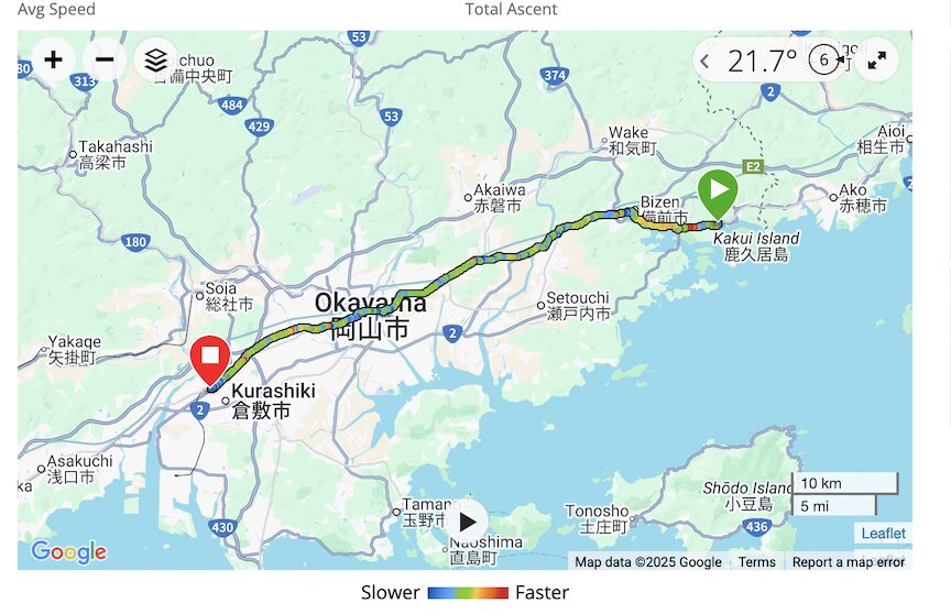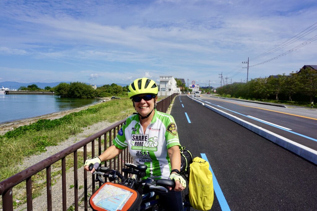 We are now on the Shimanami Kaido. This is a “must do” bike route in Japan. The Shimanami Kaido is a 70 km stretch of road for cyclists that connects Onomichi to Imabari and crosses six bridges, connecting six islands in Ehime Prefecture. Most cyclists complete the ride in one day.