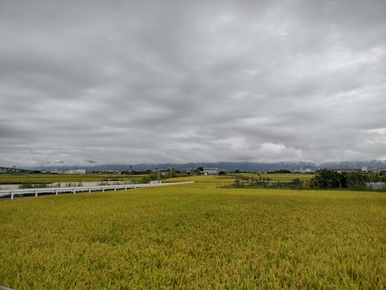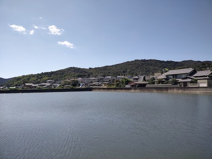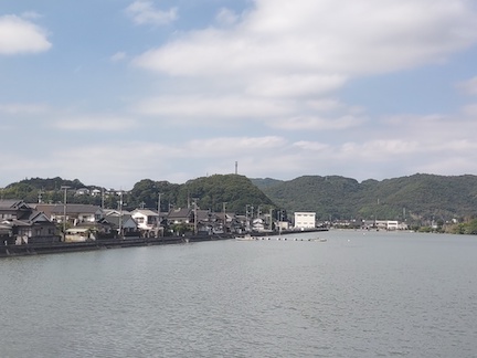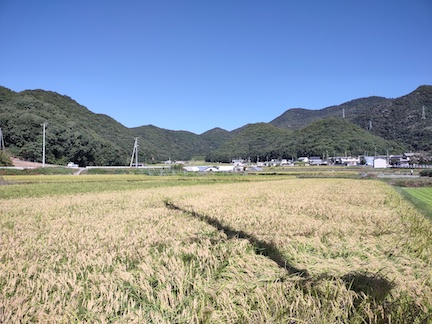 RidewithGPS gave us a nice route to Mukaishima. After we left the hotel and Highway 2 we followed some smaller roads through quiet villages. It is definitely harvest time for the rice, and families were working together to get the rice cut and dried.