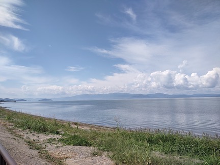 Another nice day on the Biwaichi. We left our hotel and Garmin took us on a very nice bike path back to the Biwaichi. We kept trying to get a photo of cranes or grey herons.