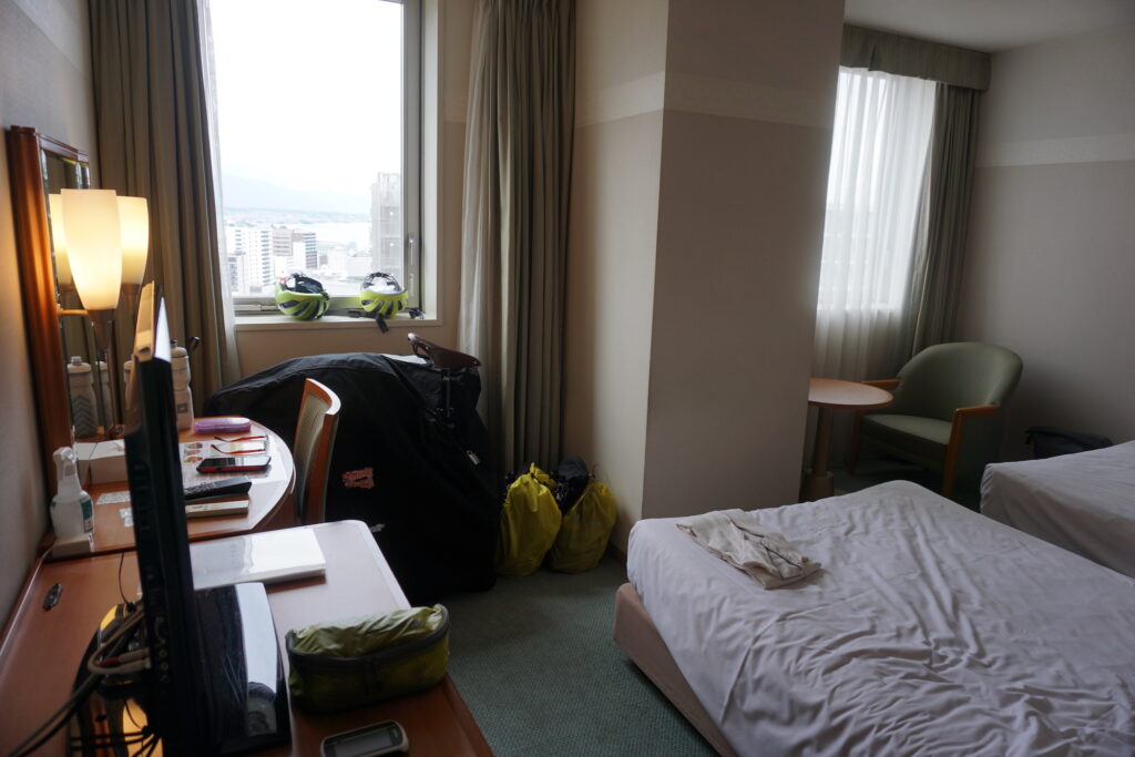 When we did check-in, the young staff were very helpful. One of them showed us where we could leave our bikes – in an open parking lot or underneath the hotel canopy for Y500, ($5.00). We didn’t bring our heavy-duty locks, so that was a no go. Back into the bags they went. The staff did allow us to use the luggage trolley to take all the gear upstairs in one go.