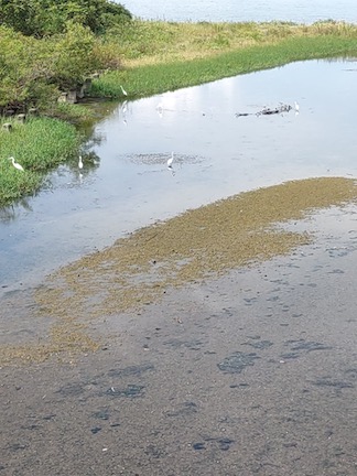 The route was lovely today, we cycled along the coast and saw surfers, we cycled inland and saw rice being harvested and we cycled up a slight hill to see a large smelter plant with huge slag heaps surrounding it. We did have a head wind today.