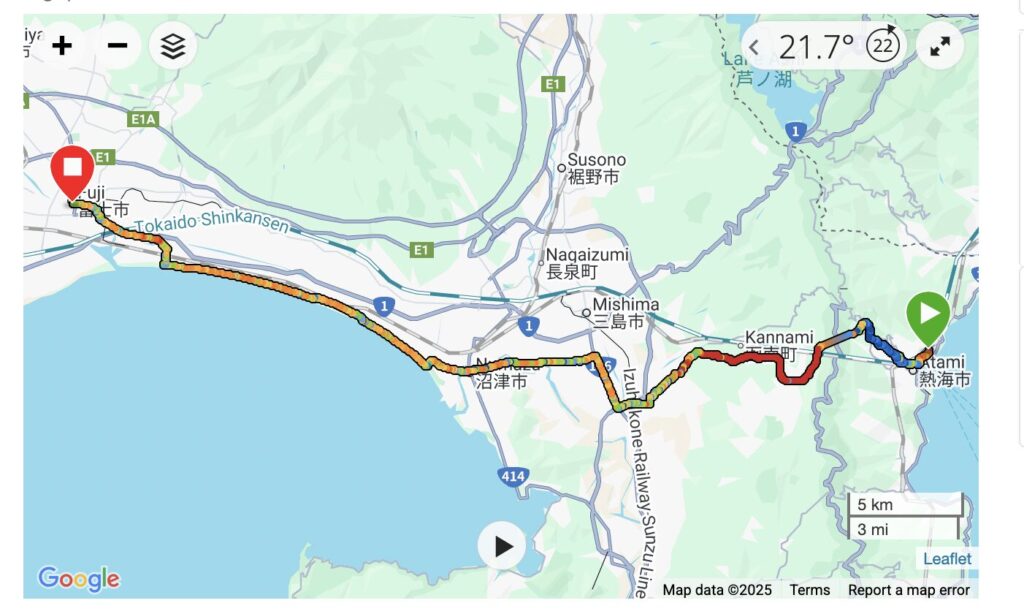 RidewithGPS found us a nice route out of Fuji and almost all the way to Yaizu. We went through a traditional Japanese Village and then GPS tried to direct us on to the Highway.