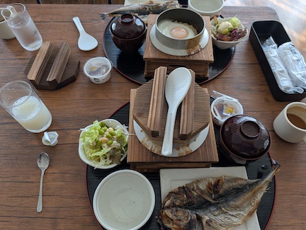 Considering we slept on the floor on a futon mattress I had a good nights sleep. I was still awake early, but felt well rested. We got the bikes from the garage where we had stored them the previous night and then headed to the restaurant for breakfast. We were early by about 10 minutes but didn’t want to change the schedule with the breakfast staff, so we had our coffee and waited.