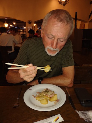 Watching my German husband eating German potato salad with chopsticks is something I never thought I would see.