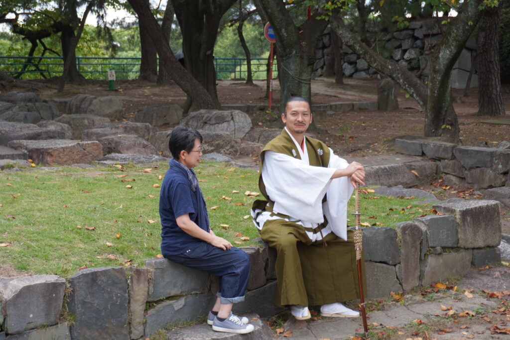 As we were leaving the main castle a woman asked if we would like us to take a photo of the two of us. Naomi indicated that she was a volunteer and acted as an English speaking guide. We chatted to her for quite a while, her son had been to Calgary on a student exchange program. She gave us two small origami samurai hats as a gift. She forgot to take our photo, but Ralf took one of Naomi and me.