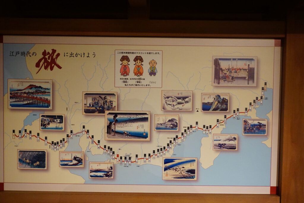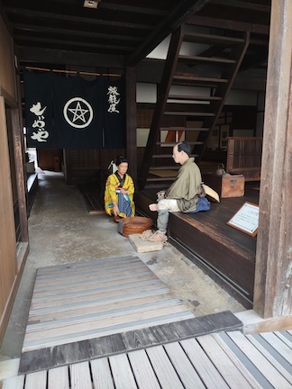 There was another group of elderly people following us around the house. One lady said Hello to me and asked where we were from. She then explained the significance of this building/museum.  This was a Honjin., a rest post for nobility travelling from the Kyoto-Osaka area to Tokyo. During the Edo period Tokaido was the most important route and we had happened upon it by accident. Of the 53 rest stations along the route Futagawa Shuku was the 33rd. There are only two original rest stations remaining.