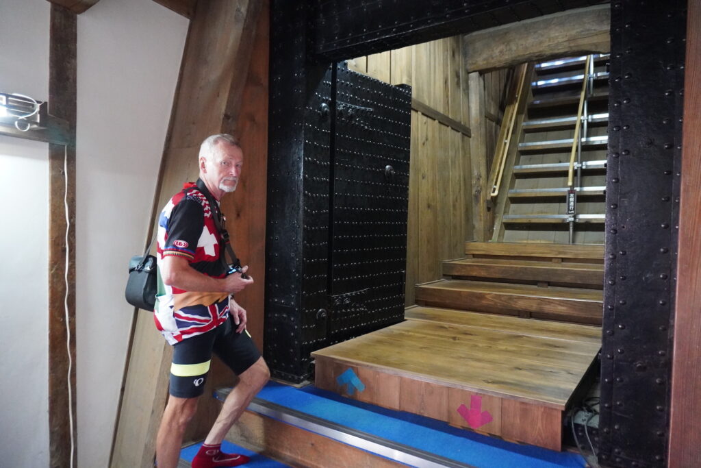 I shouted to Ralf, and we realized that it was a museum, and we had plenty of time to visit. We went to the ticket window, and I asked the lady if she had anything in English. Yes we have a pamphlet. That will do, the house looked self explanatory. She came out and showed us where we could put our bikes and asked where we were from.