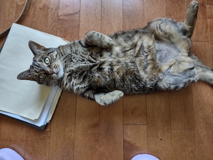 Our house-sitter, Rob, arrived on Tuesday, he seems to be very nice. Callie greeted him in her usually way, flipping onto her back so that he could rub her belly, which he dutifully complied with, another servant for Queen Callie.