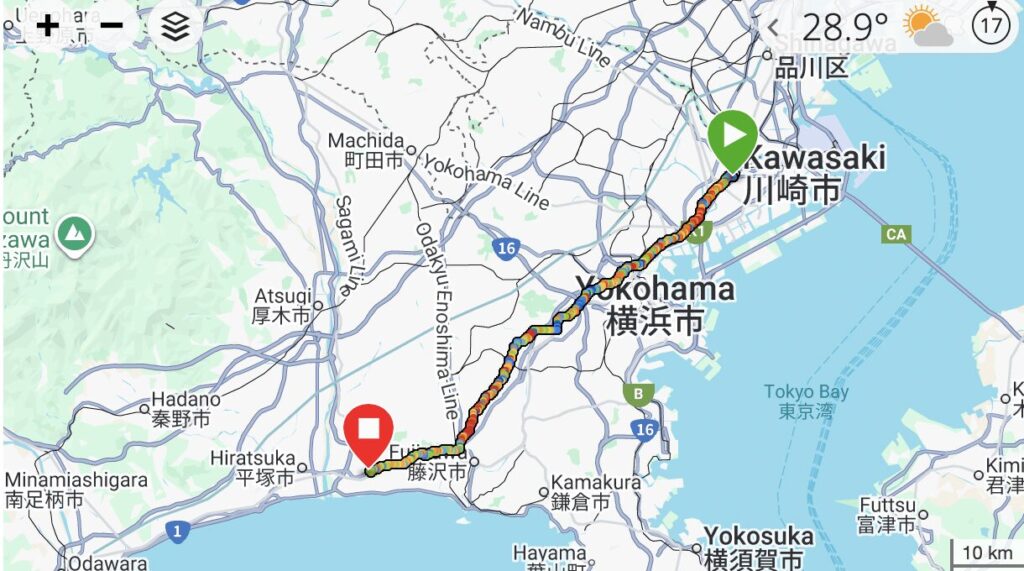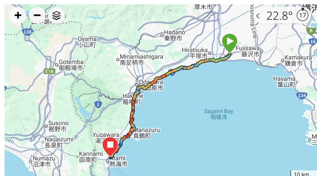 This turned out to be a disaster of a first day riding in Japan. We didn’t make it to Odawara (72 kms).