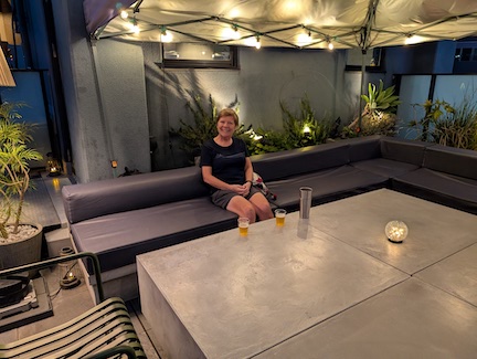 Our room is small, but manageable for the few nights we are here. The hotel has a Happy Hour between 5:30 to 6:30 with free beer. We were too late to participate but we will partake before we leave this hotel. After a quick shower we headed out for something to eat. We are close to a shopping and restaurant district. We came back to the hotel and ate in the small restaurant at the hotel.