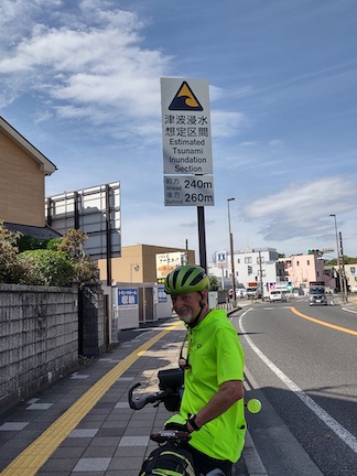 We were late leaving Kawasaki, (10:00 a.m.) and it was already over 25 degrees. We headed out of Kawasaki and it seemed like forever to get out of the City, the next City (Yokohama) seemed to merge with Kawasaki and then the next city merged with that city. It was not a pretty route, and we didn’t take many pictures.